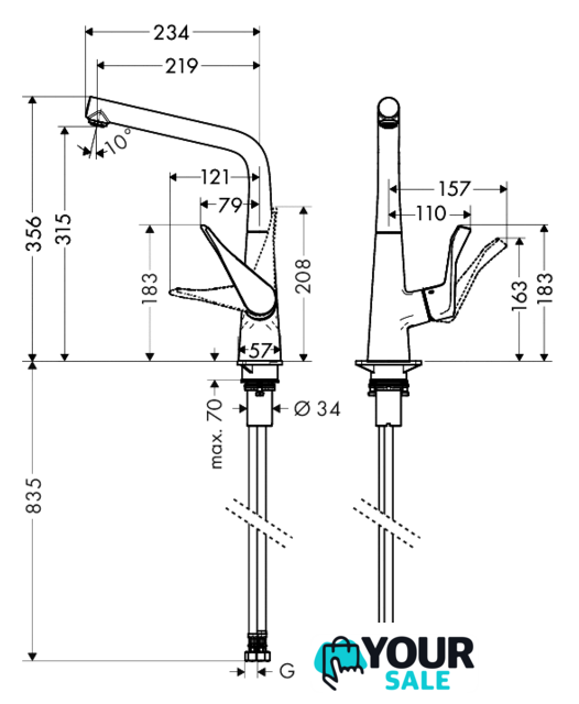 | Высота излива | 315 мм |