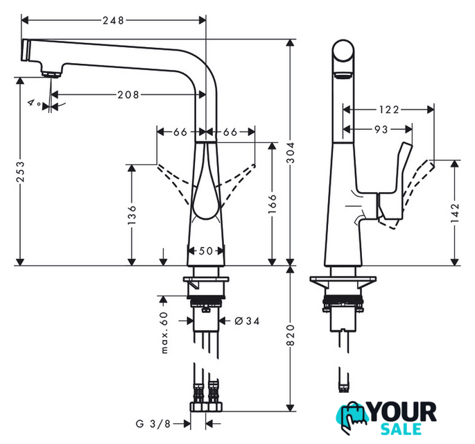 | Высота излива | 253 мм |
