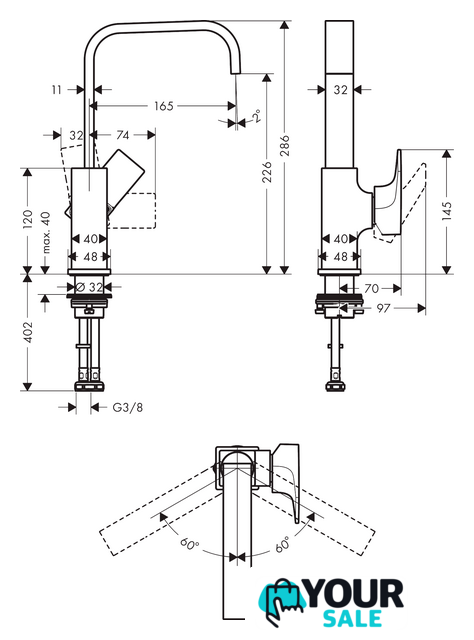 | Длина (вылет) излива | 165 мм |