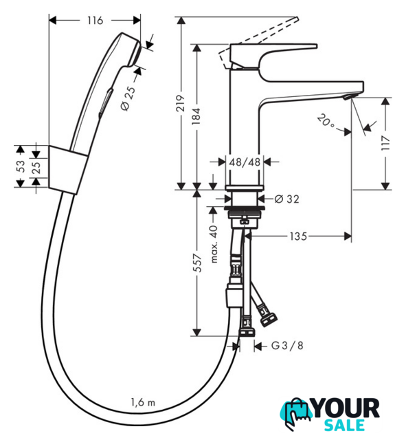 | Ширина | 48 мм (смеситель) |