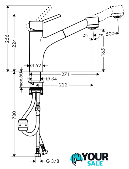 | Длина (вылет) излива | 222 мм |