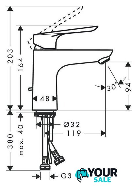 | Длина (вылет) излива | 119 мм |