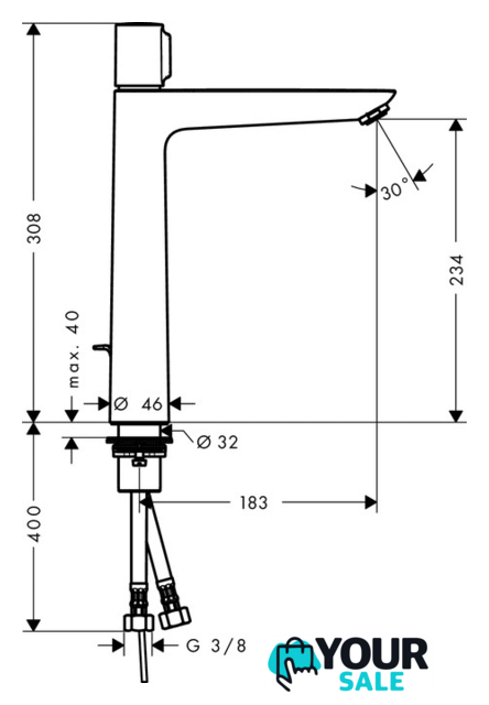 | Длина (вылет) излива | 183 мм |