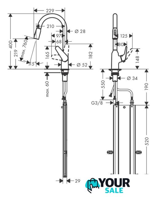 | Высота излива | 219 мм |