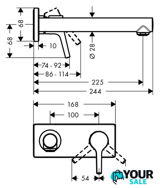 | Длина (вылет) излива | 225 мм |
