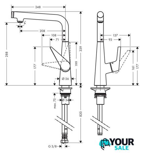| Высота излива | 288 мм |