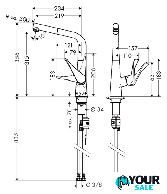 | Высота излива | 315 мм |