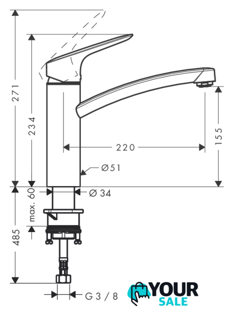 | Длина (вылет) излива | 220 мм |