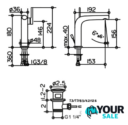 | Длина (вылет) излива | 153 мм |