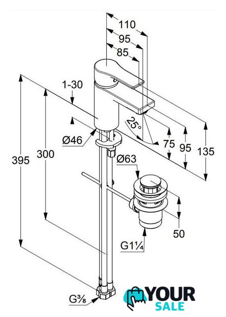 | Длина (вылет) излива | 95 мм |
