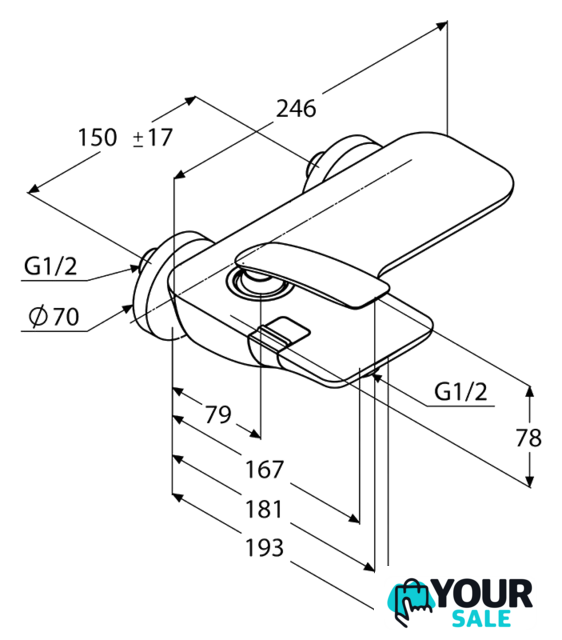 | Длина (вылет) излива | 167 мм |