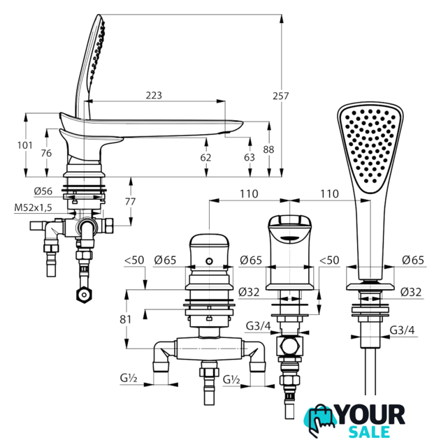 | Высота | 101 мм (101 - излив, 257 - душевая лейка) |
