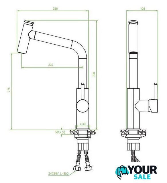 | Выдвижной/гибкий излив | аэратор+лейка |