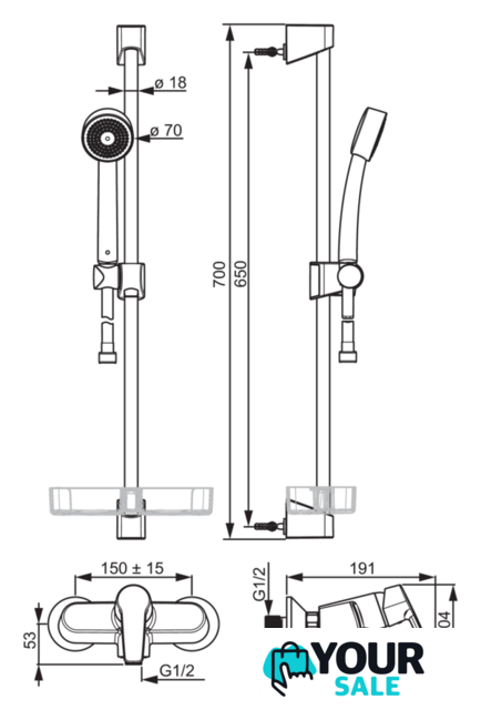 | Диаметр (ширина) ручного душа | 70 мм |