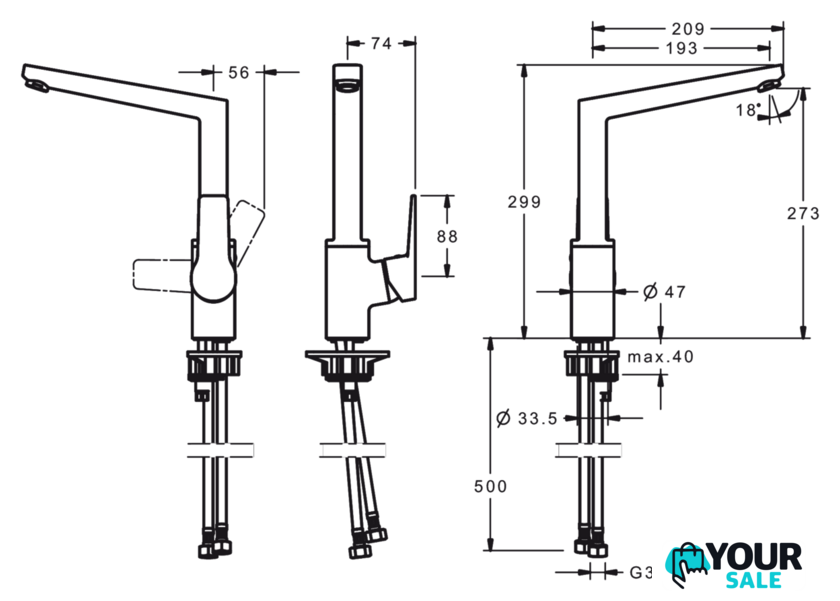 | Высота излива | 273 мм |