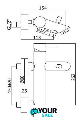 | Длина (вылет) излива | 154 мм |