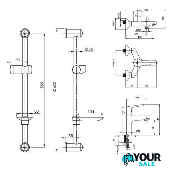 | Высота | 118 мм (150 мм - смеситель для умывальника) |