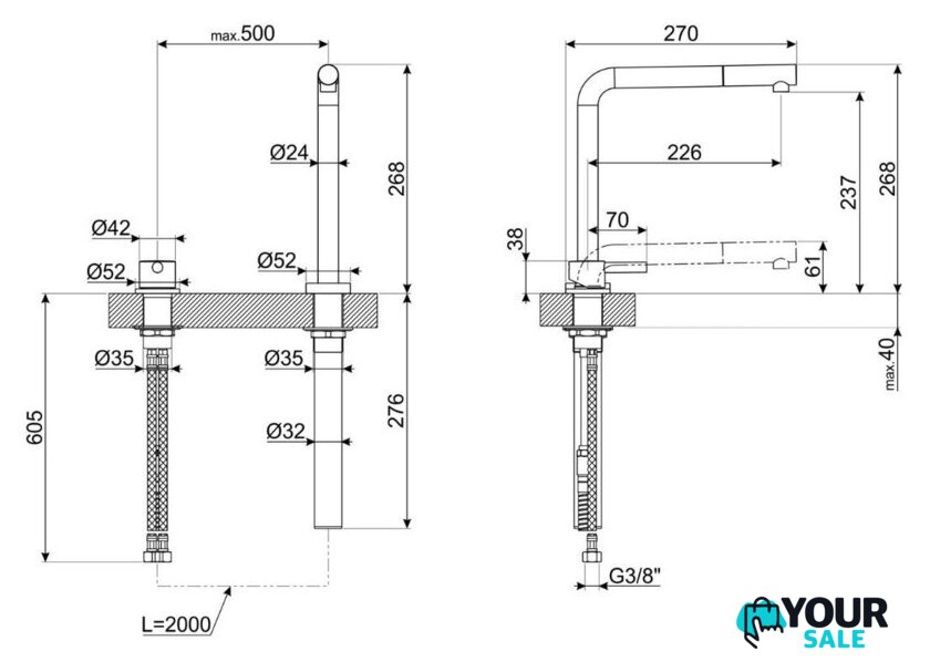 | Длина (вылет) излива | 226 мм |