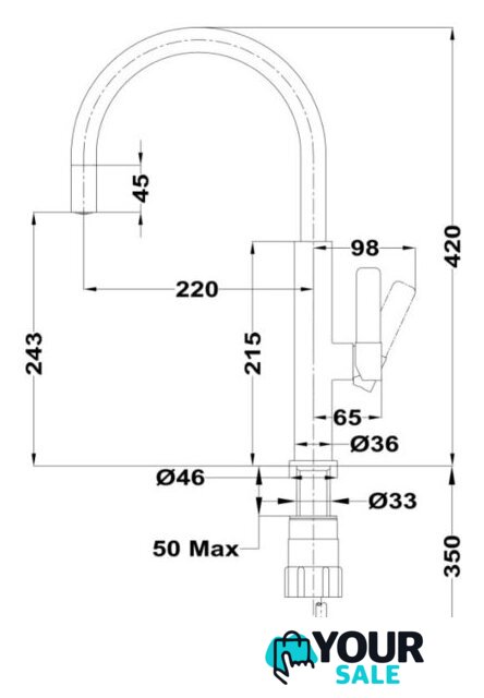 | Длина (вылет) излива | 220 мм |