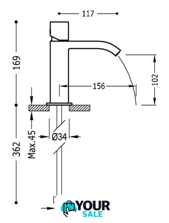 | Длина (вылет) излива | 156 мм |