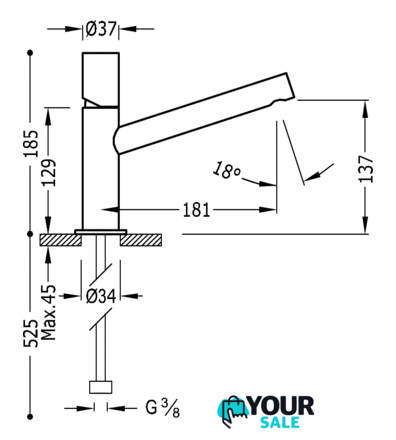 | Длина (вылет) излива | 181 мм |