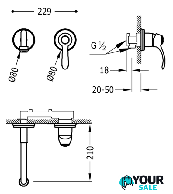 | Длина (вылет) излива | 210 мм |