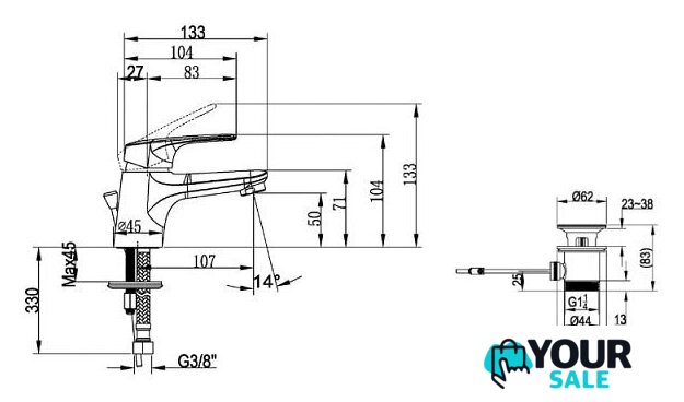 | Длина (вылет) излива | 107 мм |
