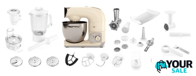 | Функции | мясорубка, блендер, взбивание, смешивание, замешивание дрожжевого теста, измельчитель, рубка, терка, шинковка, ломтерезка, приготовление мороженого |