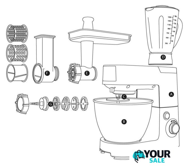 | Функции | мясорубка, блендер, взбивание, смешивание, замешивание дрожжевого теста, измельчитель, рубка, терка, шинковка, ломтерезка |