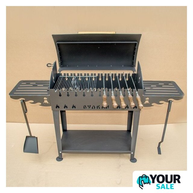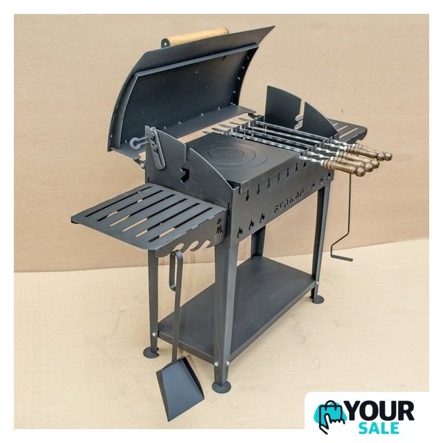 | Комплект поставки | крышка, ручка, полка (боковая 2 шт.), крючки для аксессуаров, дровница, ножки, жаровня |