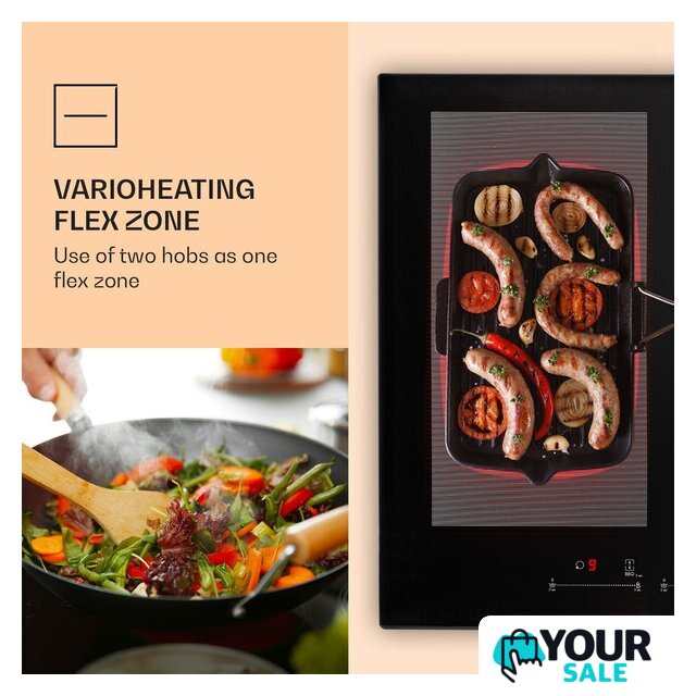 | Подробная информация о конфорках | 2 прямоугольные варочные зоны: каждая 18 х 18 см, объединяемые в гибкую зону нагрева: 39,5 х 19 смбольшая варочная зона (правая, круглая): Ø 28 сммалая зона нагрева (центральная, круглая): Ø 16 см |