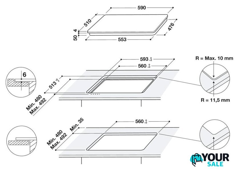 | Овальные/прямоугольные конфорки | 1 |