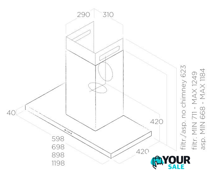 | Минимальная производительность отвода | 120 куб. м/ч |
