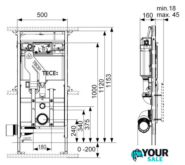 | Отверстия под унитаз | 180 мм, 230 мм |