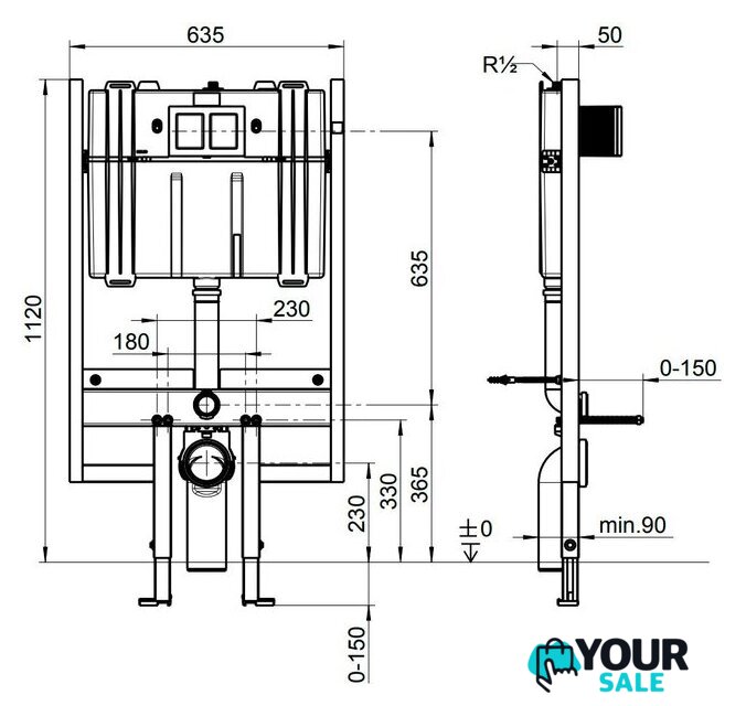| Отверстия под унитаз | 180 мм, 230 мм |