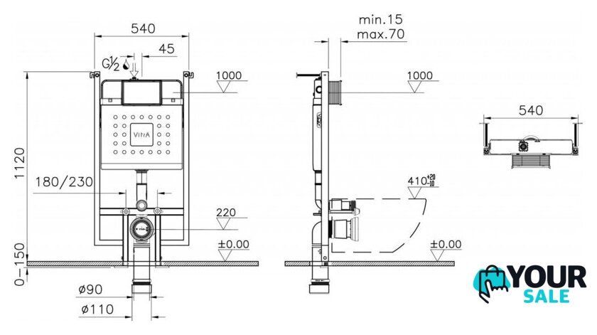 | Отверстия под унитаз | 180 мм, 230 мм |