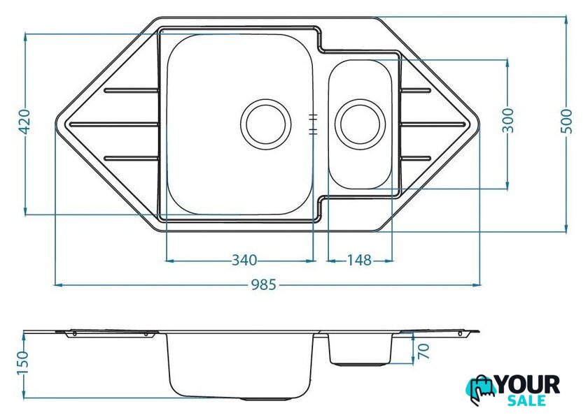 | Ширина мойки | 98.5 см |