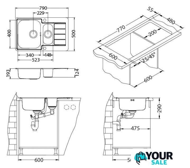 | Комплектация | Двойной сифон с клапаном-автоматом. |