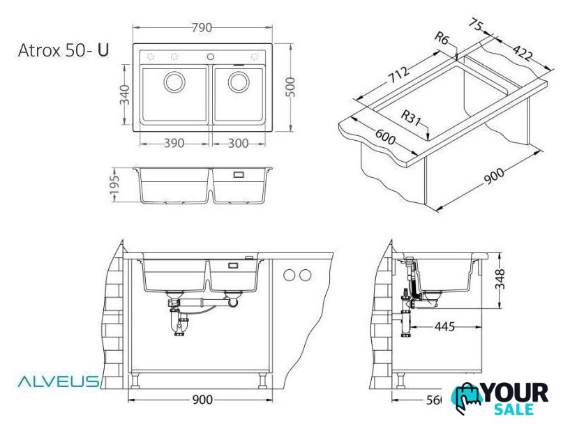 | Способ установки | врезная на столешницу |
