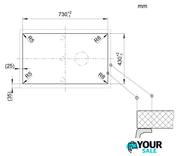 врезная на столешницу, искусственный камень, размеры: 50x78 см, в шкаф 45 см