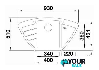 врезная на столешницу, искусственный камень, размеры: 93x51 см, в шкаф 90 см