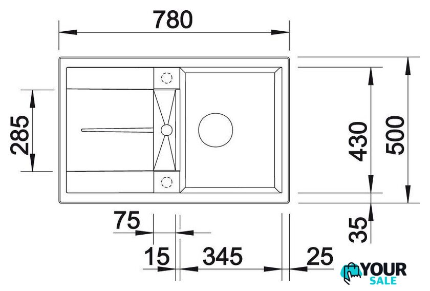 врезная на столешницу, искусственный камень, размеры: 50x78 см, в шкаф 45 см