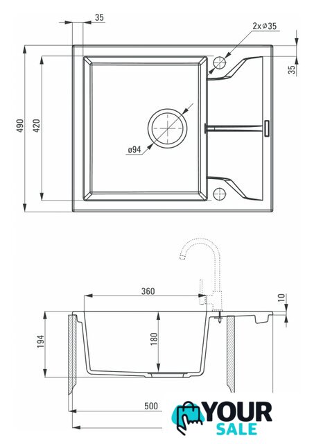 | Глубина мойки | 49 см |