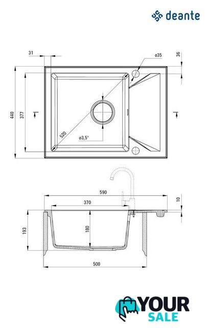 | Длина мойки | 59 см |