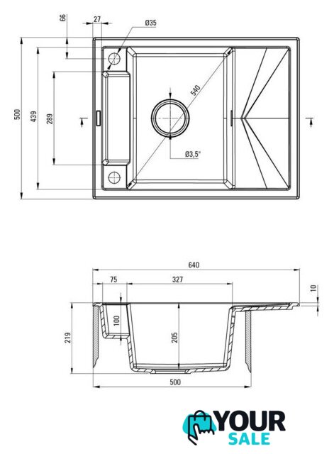 | Диаметр сливного отверстия | 3.5" |