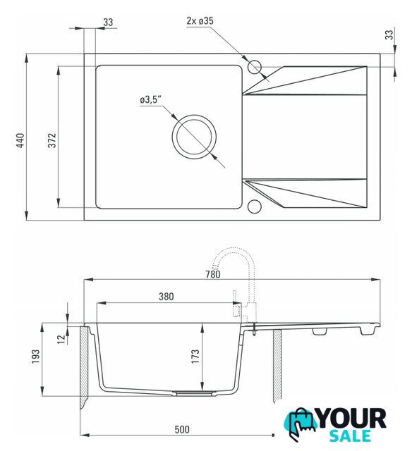 | Диаметр сливного отверстия | 3.5" |