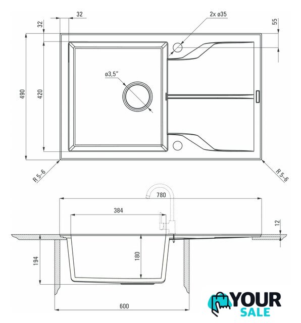 | Способ установки | врезная вровень со столешницей |