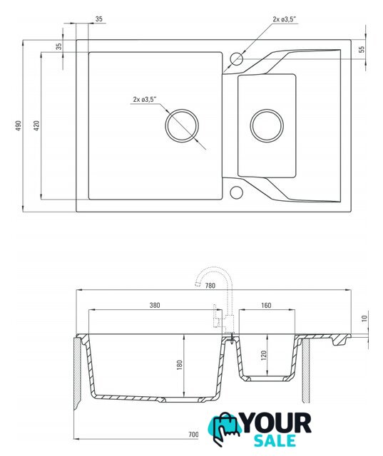 | Способ установки | врезная на столешницу |