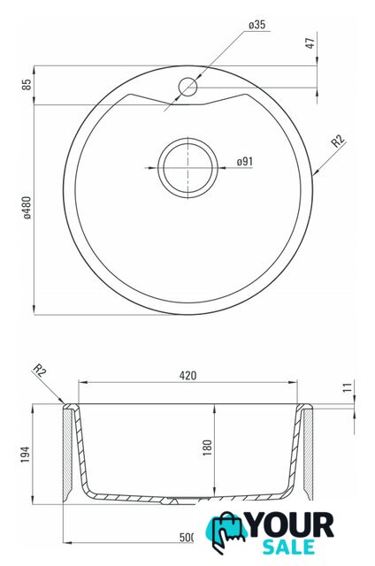 | Ширина мойки | 48 см |