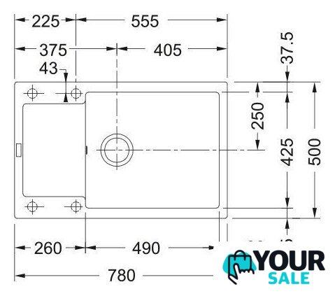 врезная на столешницу, искусственный камень, размеры: 78x50 см, в шкаф 60 см